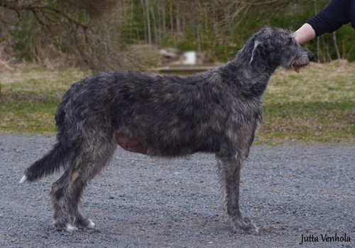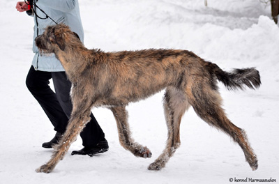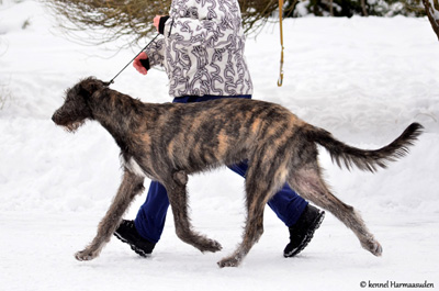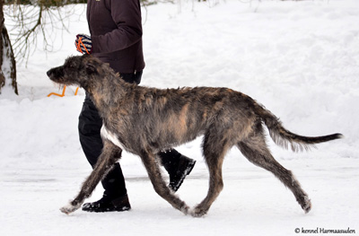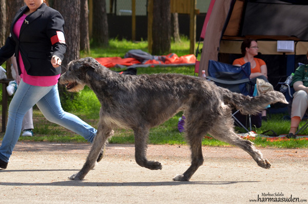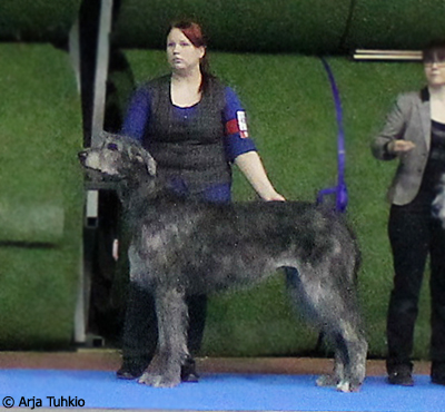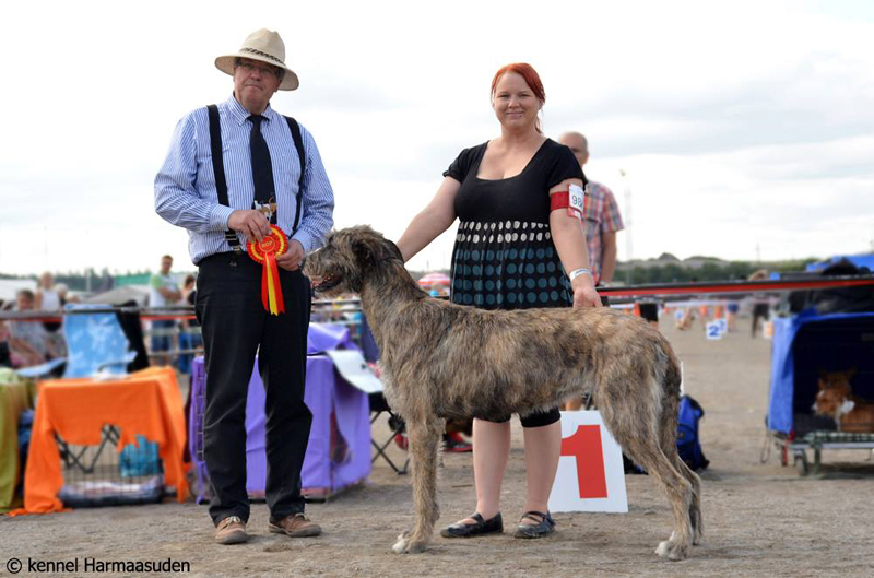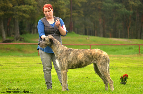 Alona follows her fater's footsteps and got her first CAC from Irish wolfhound breeder Markku Mähönen