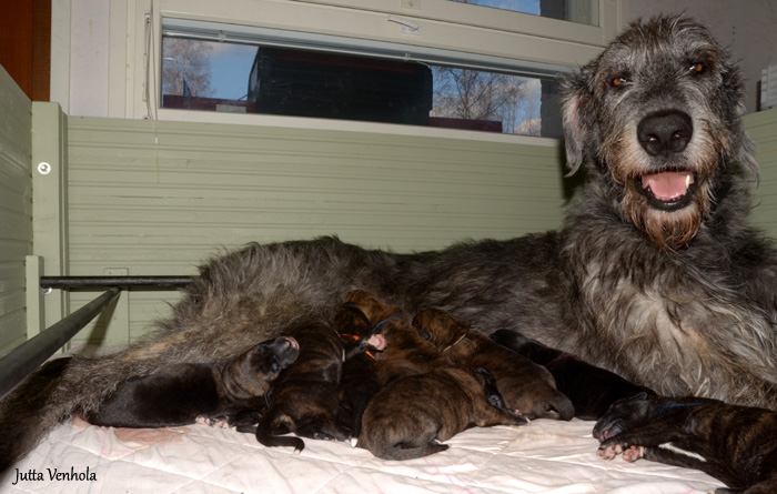 Harmaasuden A-litter was born 3.5.2012. 11 puppies, 5+6. The mother and the puppies are all fine!